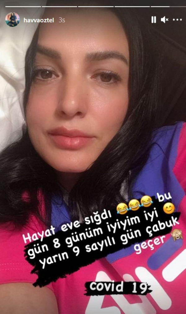 Öztel Instagram hesabının hikaye bölümünden yaptığı paylaşıma, “Hayat eve sığdı. Bugün 8. günüm iyiyim iyi. Sayılı gün çabuk geçer” mesajını düştü.