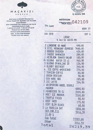 Maça Kızı’nda yemek yiyen bir grup tam 26 bin TL ödeme yaptı. 3 bin TL servis bedeli alındı.