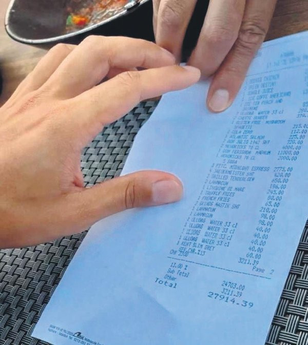 Maça Kızı’na giden grup 27 bin 914 lira hesap ödedi. 1 lahmacunun 98 lira olduğu adisyonu görenler, “Pes” dedi.