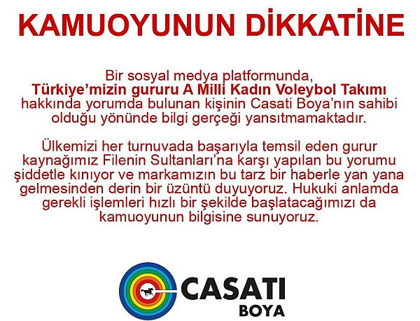 Çıkan haberlerin ardından Casati Boya, Zafer Bağkale’nin Casati Boya’yı 8 yıl önce devrettiğini ifade ederek kamuoyuna şu önemli açıklamayı yaptı: