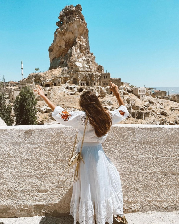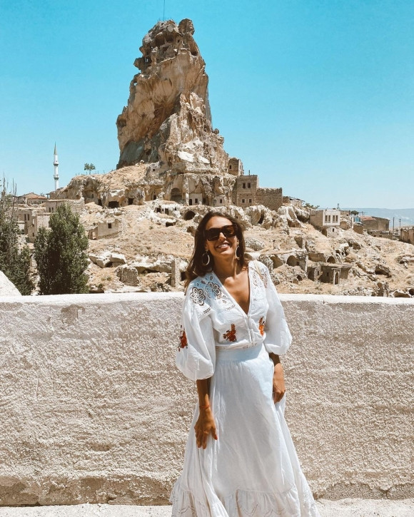 Güzel oyuncu peri bacalarının önünde çekildiği fotoğraflarını da sosyal medya hesabından ‘Çocukluğum Kapadokya’ notuyla paylaştı.