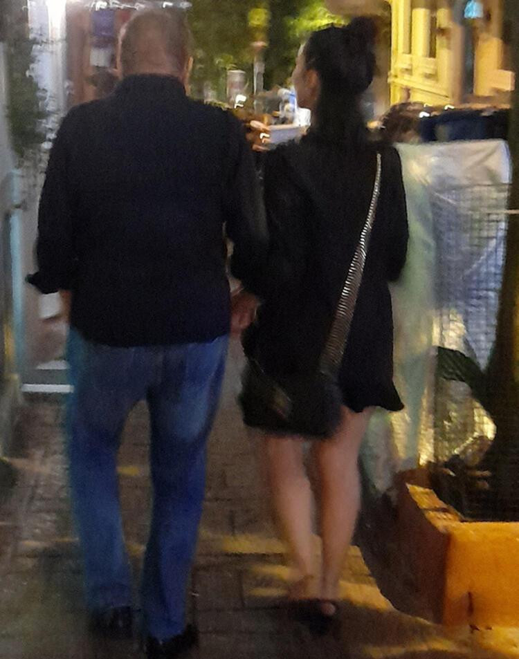 Bir süre önce yeni saç şekli ve rengiyle gündem olan Erman Toroğlu fotoğraflarının çekildiğinden habersiz yürürken, elini tuttuğu arkadaşının ise görüntülendiklerini fark edince eski hakemin elini bırakması dikkat çekti.