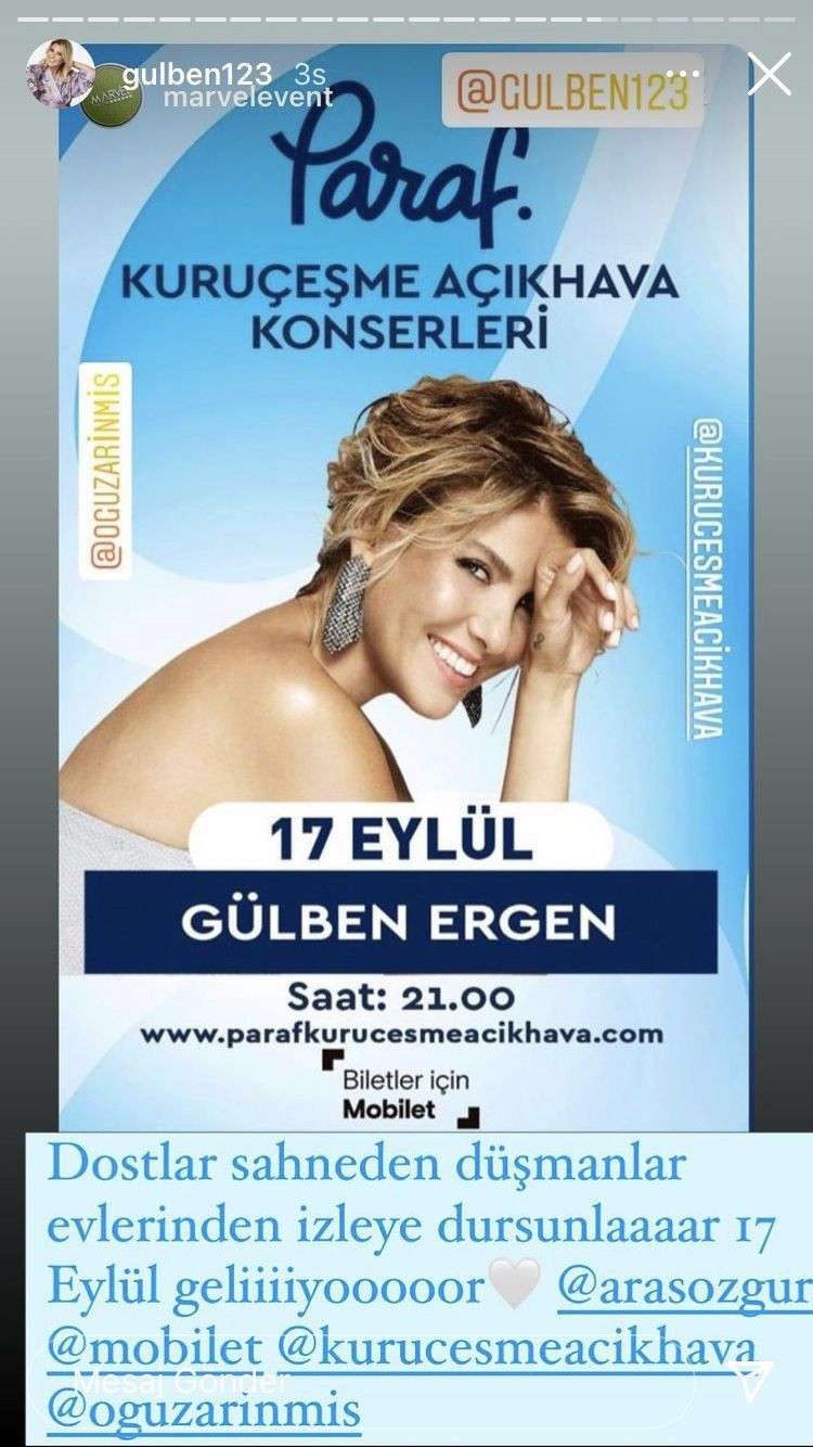 Sosyal medya hesabından konser afişini paylaşan Gülben Ergen; dosta düşmana sevincini ve heyecanını işte böyle ilan etti…
