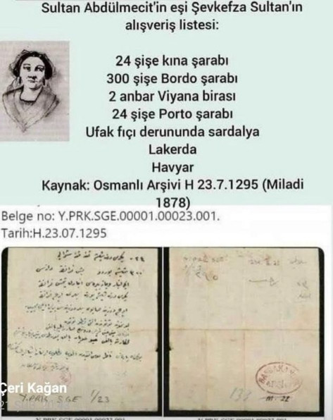 Osmanlı döneminde saraya alınan şarap ve alkol miktarlarının olduğu belgeyi paylaşan Haloçoğlu şu notu düştü: