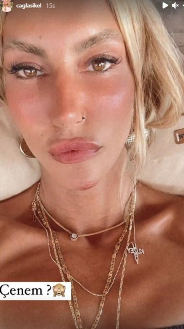 Çenesinin üzerine düşen Çağla Şıkel son görüntüsünü de takipçileriyle paylaşmayı ihmal etmedi.