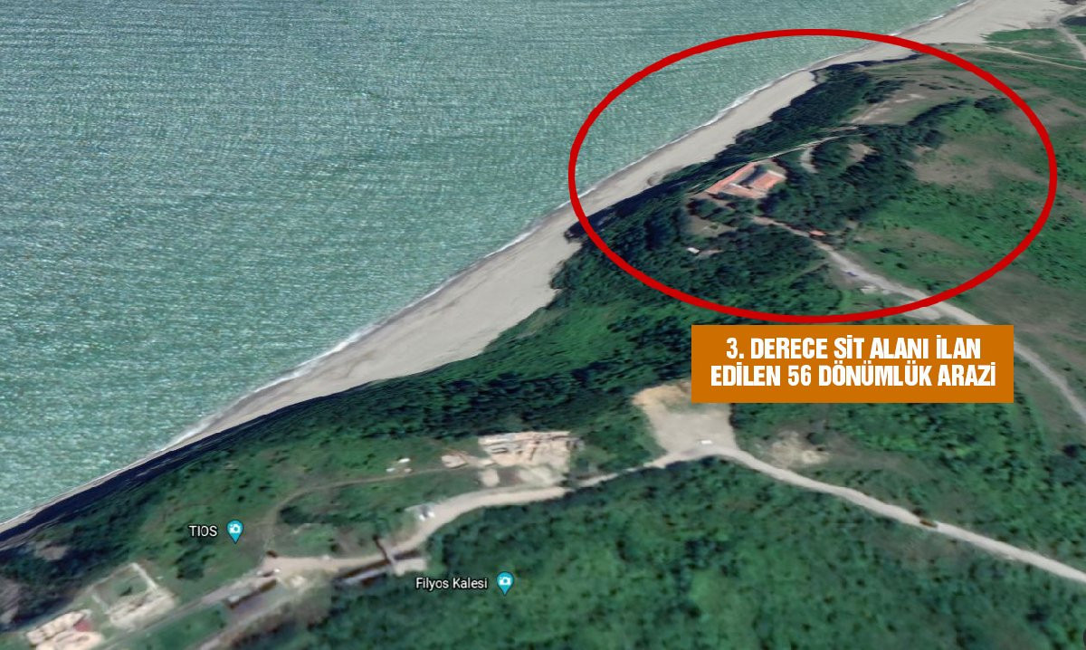 Sözcü Gazetesi’nden Yusuf Demir’in haberine göre Karadeniz kıyısında, üzerine modern şehir yapılmamış tek antik kent Tios’ta, tarihi eserlerle dolu 56 dönümlük 1. derece sit alanı, 3. dereceye düşürüldü. Böylece inşaat yapımının önü açıldı. 2 bin 700 yıllık antik kentin yanındaki Filyos Limanı, Cumhurbaşkanı Erdoğan tarafından geçtiğimiz ay açılmıştı. İddiaya göre denize sıfır antik kent üzerine konut inşa edilecek.