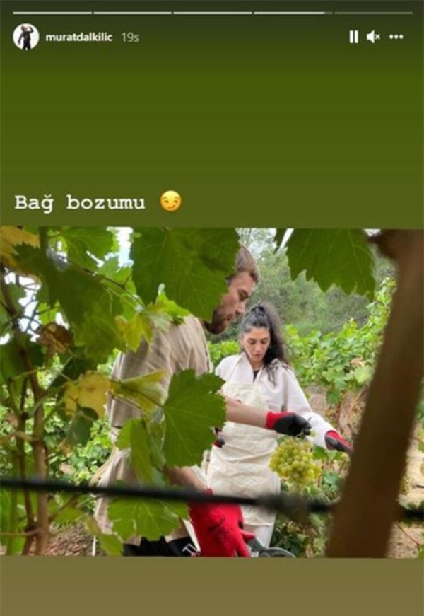 Bağ bozumu şenliğine katılıp üzüm toplayan ünlü çiftten Murat Dalkılıç, güzel oyuncu ile yeni karesini paylaşıp ‘bağ bozumu’ notunu düştü.