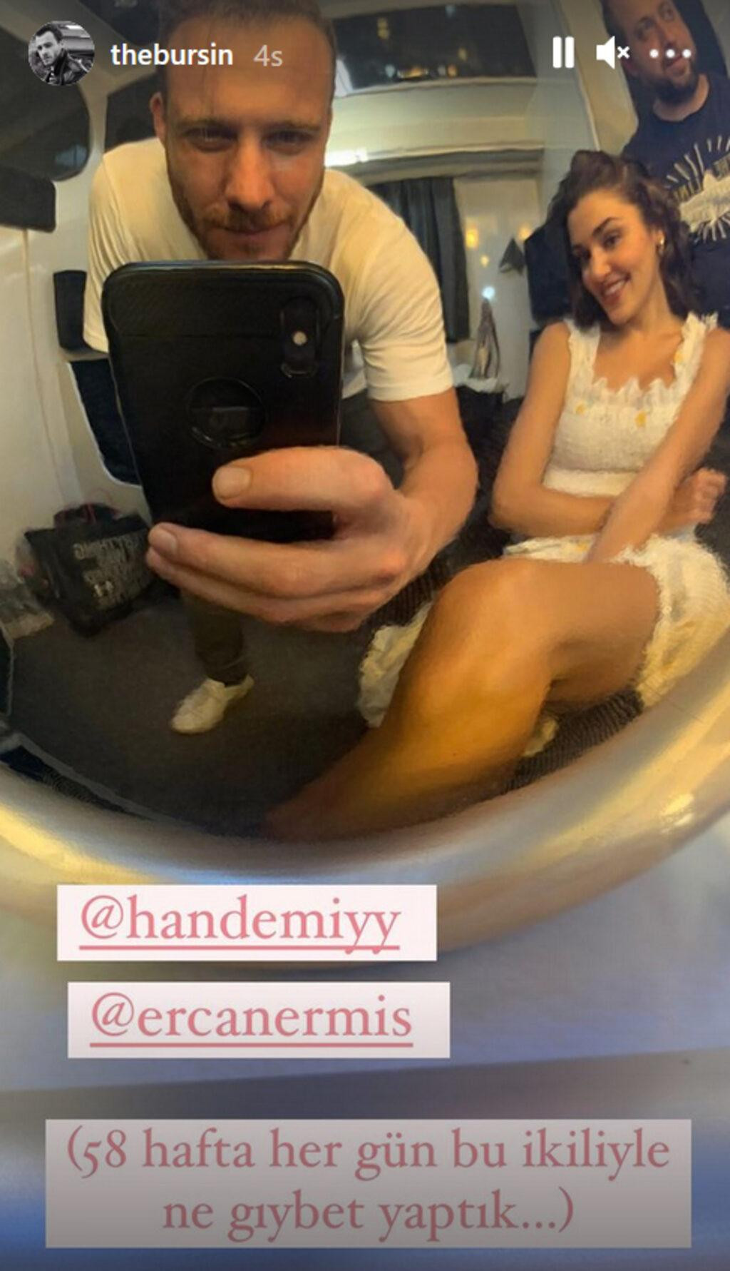 Hande Erçel ve Kerem Bürsin de son set gününde çekilen kareyi Instagram hesaplarından paylaştı.