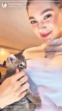 Yavru kedileri sevme bahanesiyle art arda paylaşımlarda bulunan Lisaveti Karibskaya, tektaşını gösterebilmek için elinden gelen çabayı sarf etti.