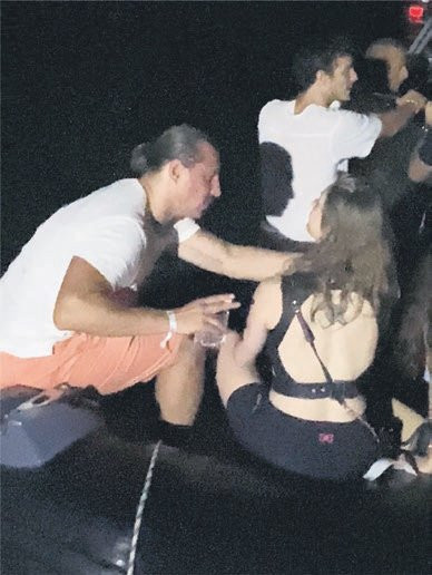 Sürpriz aşıklar, daha sonra sarmaş dolaş mekandan ayrılarak karaya çıktı.