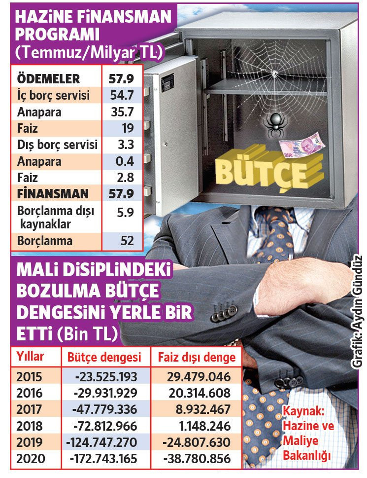 Sözcü Gazetesi’nden Nuray Tarhan’ın haberine göre son 4 yıldır bozulan mali disiplin bütçe dengesini de sarsıyor. Bu yıl bütçede öngörülen açık hedefinin 245 milyar liraya çıkması bunun en açık göstergesi. Bütçe dengesinin yanı sıra 2019 yılından bu yana faiz dışı dengenin de bozularak negatife döndüğünü vurgulayan vergi uzmanı Dr. Ozan Bingöl, “Artık borç faizini ödemek için de borçlanmak zorunda kalıyoruz. Hazine sadece temmuz ayında faize 21.8 milyar TL ödedi. Bunu ödeyebilmek için ilave borçlanma yapıldı. Yeni vergiler ve artış oranları kaçınılmaz” dedi.